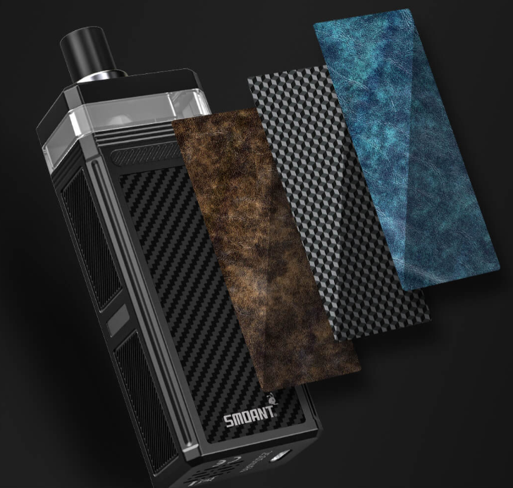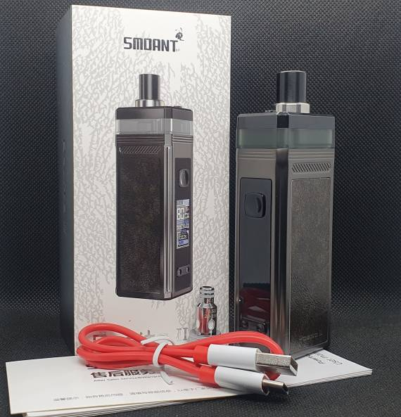 Smoant Pasito 2 kit – под-мод средних размеров, оснащенный достаточно мощным встроенным аккумулятором, обладающий хорошей функциональностью и рассчитанный на использование сменных испарителей, RBA-базы и атомайзеров с 510-м коннектором. Дизайн нового устройства напоминает своего предшественника – прямоугольник со стильными вставками из искусственной кожи. Девайс оснащен неплохой платой, способной не только работать в пяти режимах, но и позволяющей получить мощность до 80 Ватт. Съемный картридж большого объема рассчитан на работу с испарителями для Pasito и Knight 80, а при необходимости может быть заменен на адаптер для стандартных атомайзеров с 510-м коннектором.