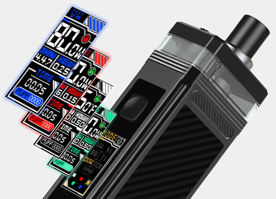 Немаловажная особенность Smoant Pasito 2 kit в том, что устройство оснащено достаточно функциональным чипсетом, позволяющим выбрать один из четырех режимов VW, DVW, Bypass, TC (NI200, SS, TI). Благодаря такой функциональности под-мод можно уверенно сравнить с неплохим бокс-модом. Девайс оснащен небольшим цветным дисплеем, цветовую схему которого можно самостоятельно выбрать в зависимости от предпочтений и даже настроения. На дисплее можно найти всю необходимую для вейпера информацию – режим, мощность, уровень заряда АКБ, сопротивление, напряжение, количество и время затяжек.