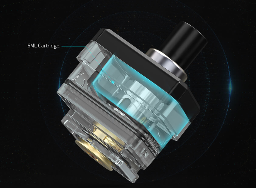 По сложившейся традиции в Smoant Pasito 2 kit используется картридж, который удерживается в батарейном блоке при помощи магнитов. Немаловажная особенность в том, что объем картриджа составляет 6 мл, а это немало. Дрип-тип 510-й, поэтому не составит труда его заменить.